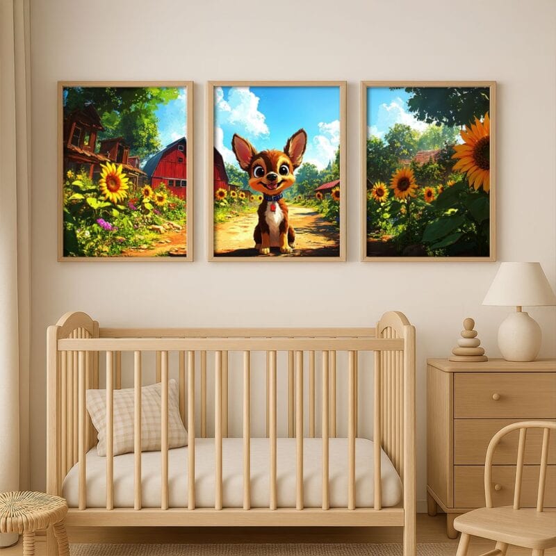 Zestaw 3szt. - plakaty obrazki do pokoju dziewczynki kurczak zwierzęta 89,00 zł – 159,00 złZakres cen: od 89,00 zł do 159,00 złZestaw 3szt. – plakaty do pokoju dziecka pies zwierzęta