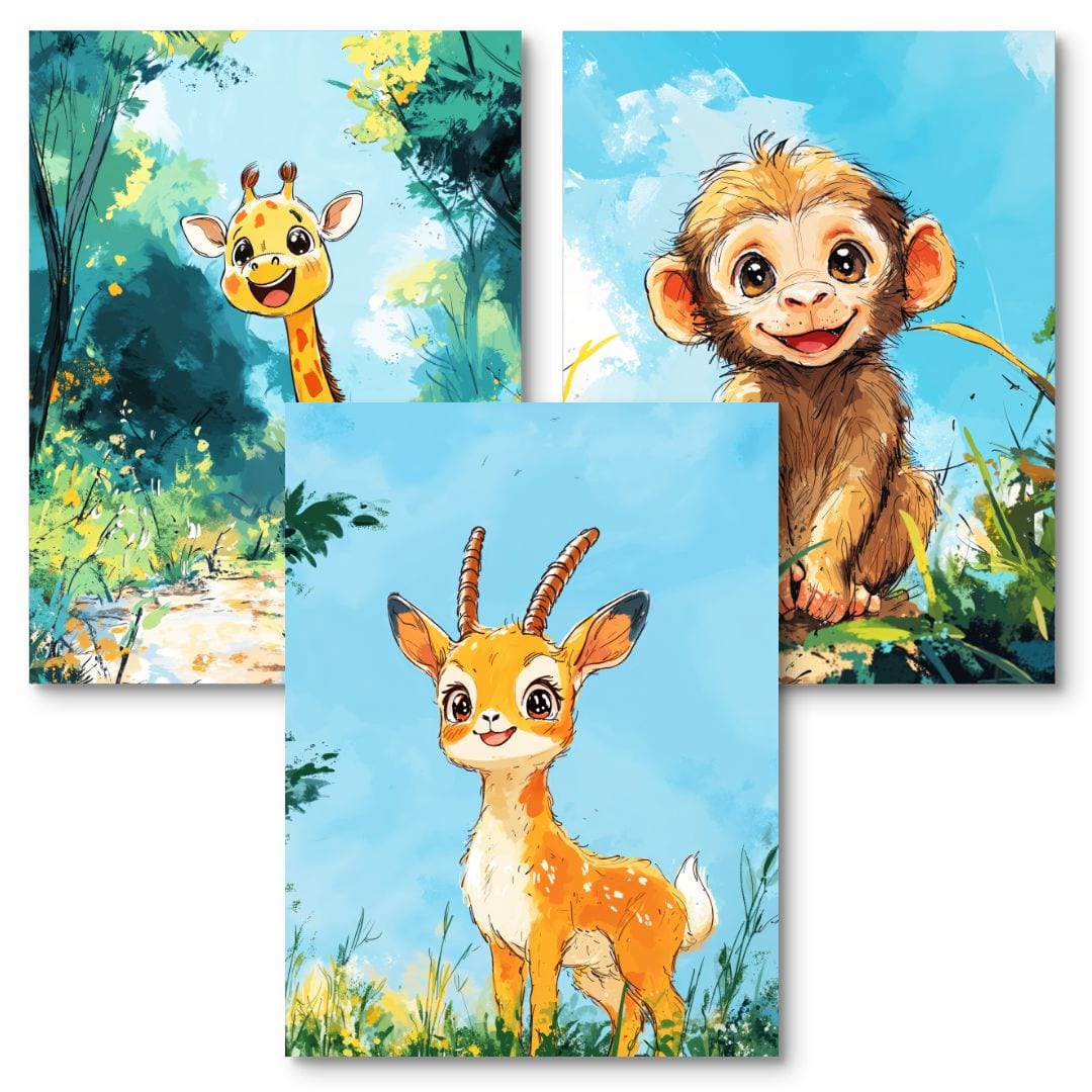 Zestaw 3szt. - plakaty obrazki do pokoju dziecięcego zwierzęta pies 89,00 zł – 159,00 złZakres cen: od 89,00 zł do 159,00 złZestaw 3szt. – plakaty obrazki dla dzieci zwierzęta safari