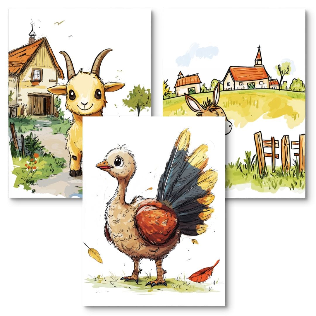 Zestaw 3szt. - plakaty dla dziecka obrazki zwierzęta kot kogut sowa 89,00 zł – 159,00 złZakres cen: od 89,00 zł do 159,00 złZestaw 3szt. – plakaty obrazki do pokoju chłopca zwierzęta koza indyk