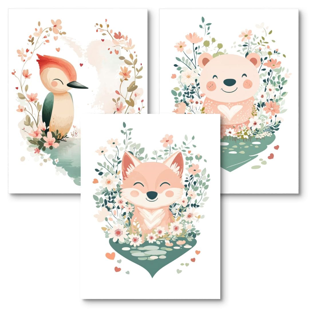 Zestaw 3szt. - plakaty dla dziecka niemowlaka zwierzęta sarna kaczka 89,00 zł – 159,00 złZakres cen: od 89,00 zł do 159,00 złZestaw 3szt. – plakaty obrazki do pokoju dziecięcego zwierzęta ptak lis